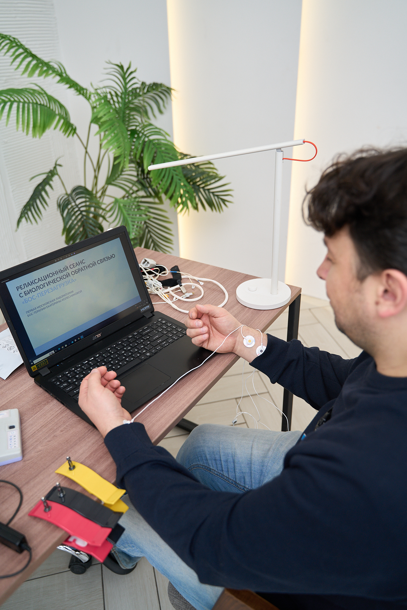 К телу подключаются специальные датчики, которые отслеживают различные психофизиологические показатели в реальном времени. Вы видите эти показатели на экране и учитесь ими управлять. Со временем этот навык закрепляется, и вы можете использовать его в повседневной жизни.